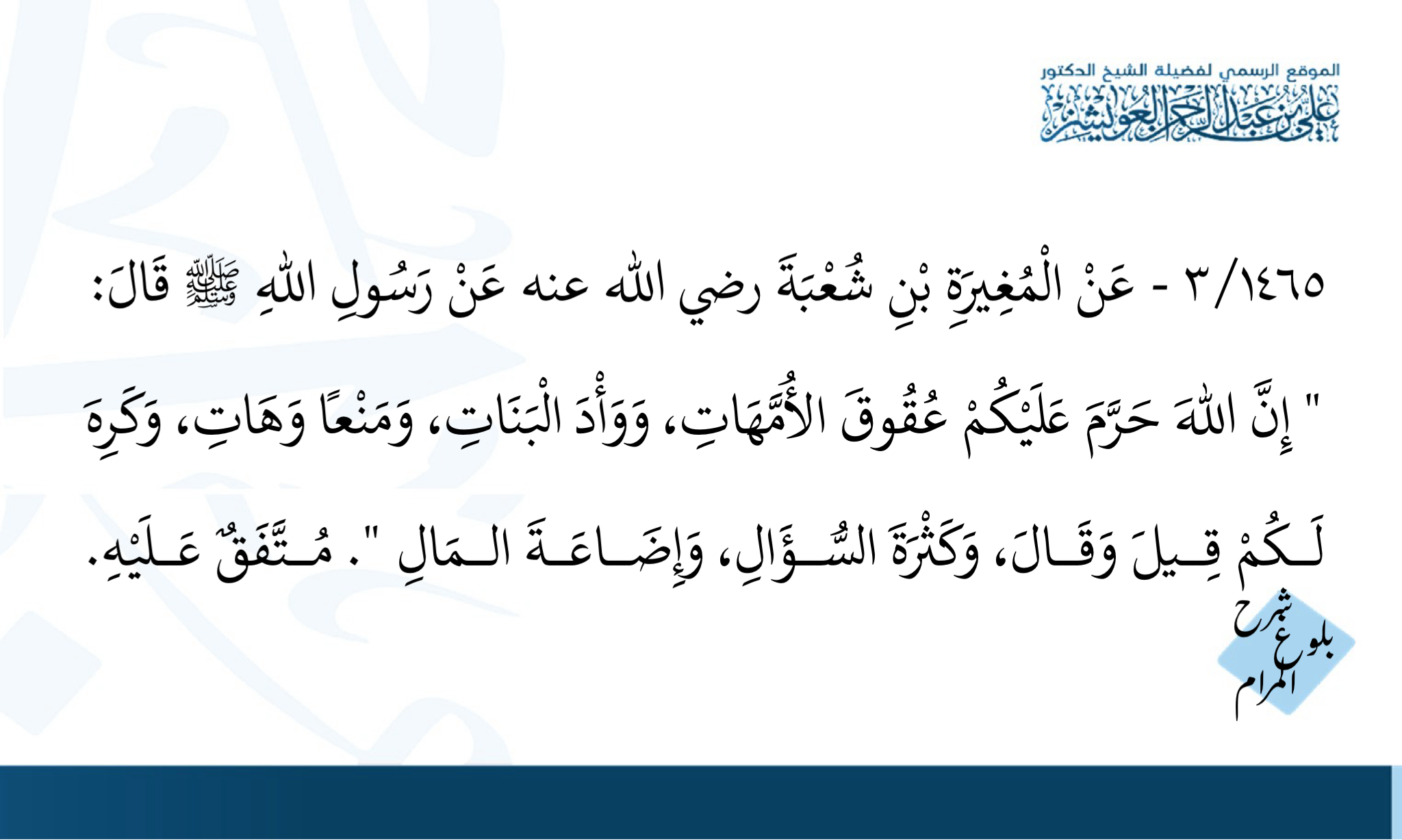 حديث (إن الله حرم عليكم عقوق الأمهات) – 1357 شارك على تويتر شارك على الواتس شارك على فيسبوك 3 المشاهدات