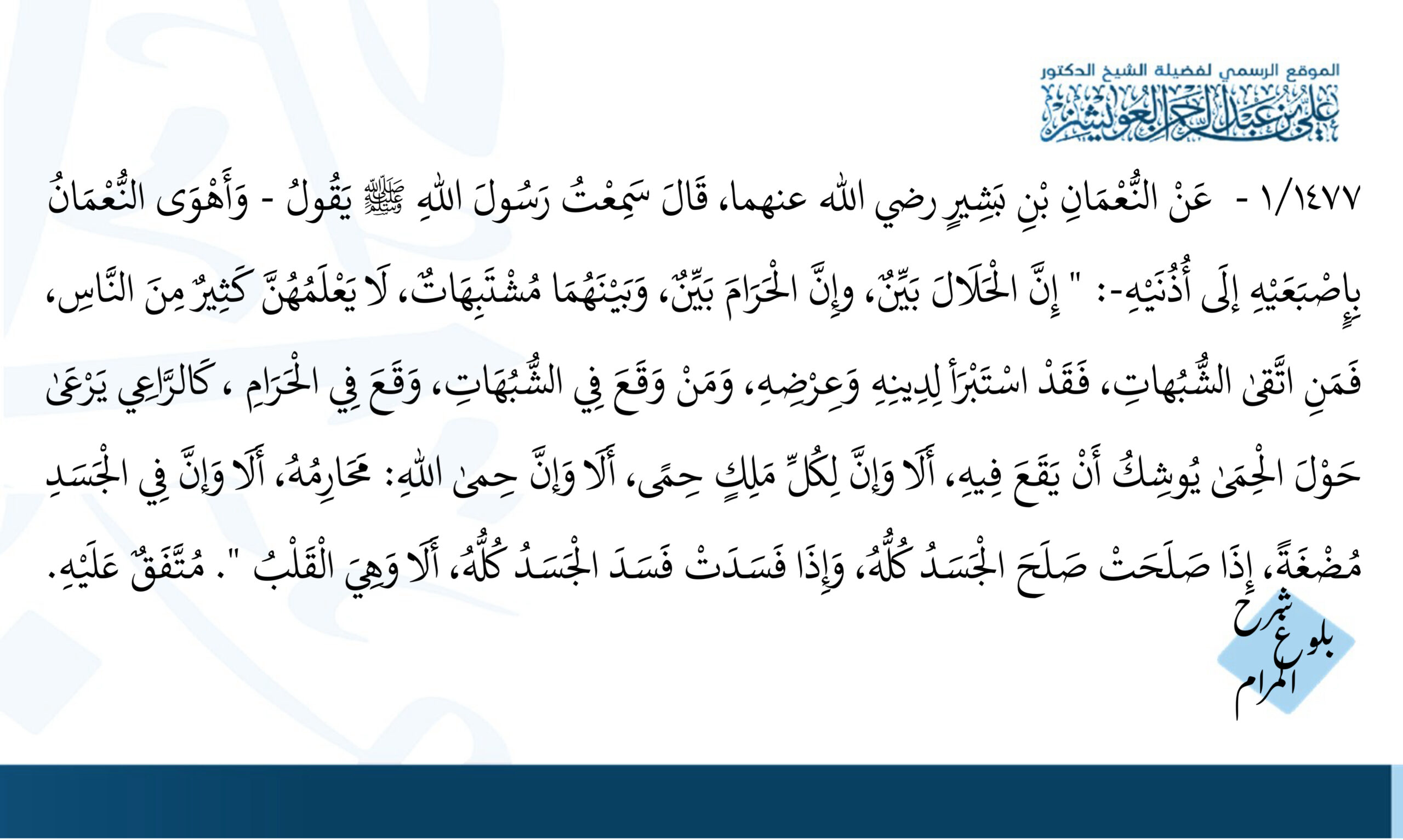 حديث (إن الحلال بين وإن الحرام بين) – 1368 شارك على تويتر شارك على الواتس شارك على فيسبوك 15 المشاهدات