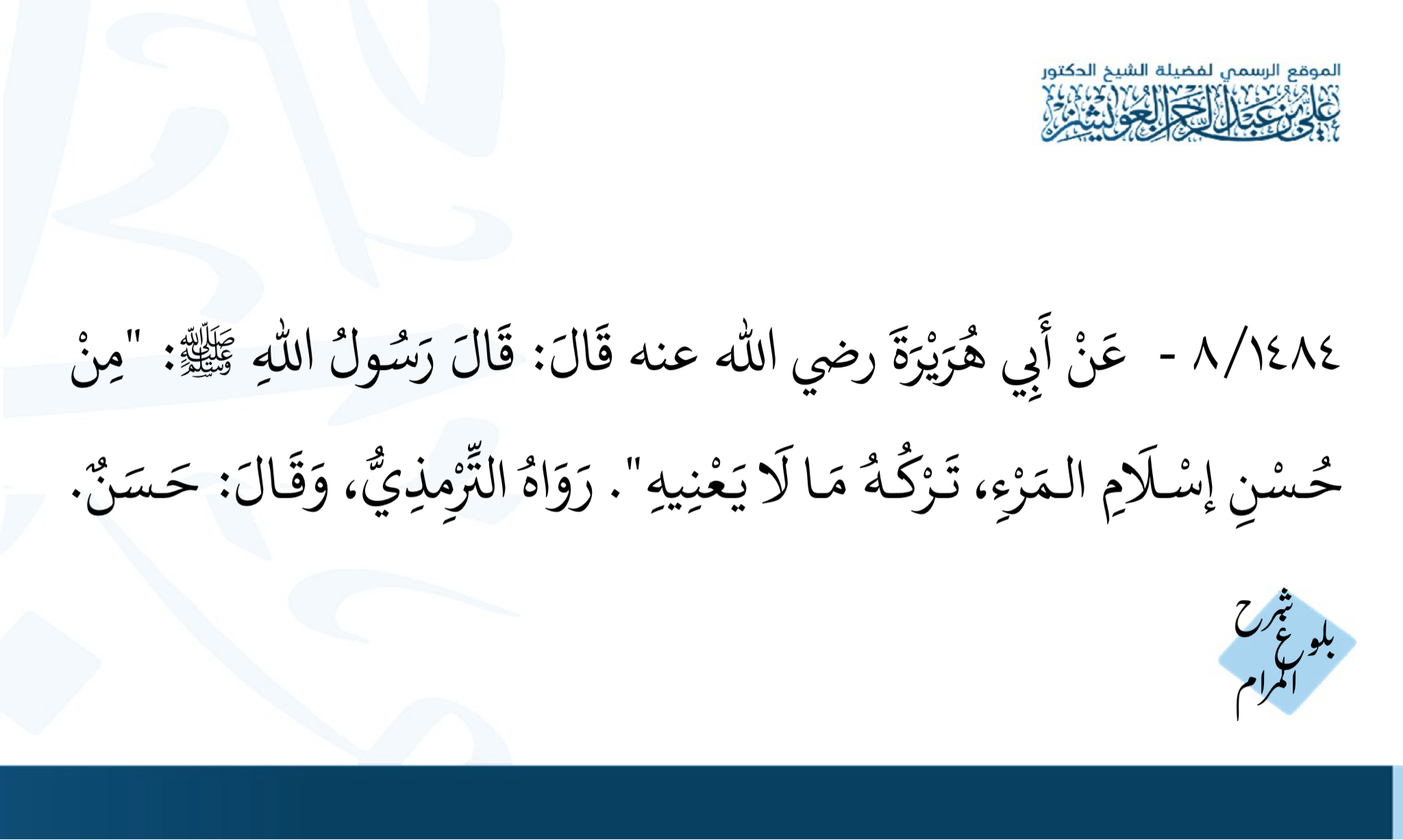 حديث (من حسن إسلام المرء تركه مالا يعنيه) – 1375 شارك على تويتر شارك على الواتس شارك على فيسبوك 3 المشاهدات