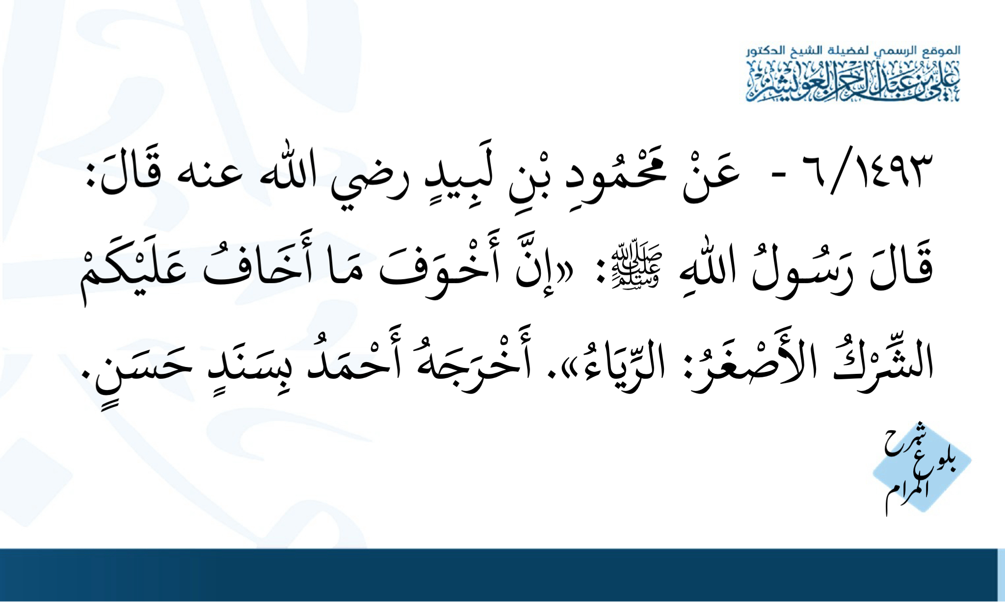 حديث (إن أخوف ما أخاف عليكم الشرك الأصغر) – 1383 شارك على تويتر شارك على الواتس شارك على فيسبوك 9 المشاهدات